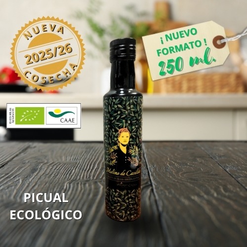 Oil produced from olives variety picual, FROM ORGANIC AGRICULTURE originating from olive groves of Sierra. From the Sierra de las Villas de Jaén.