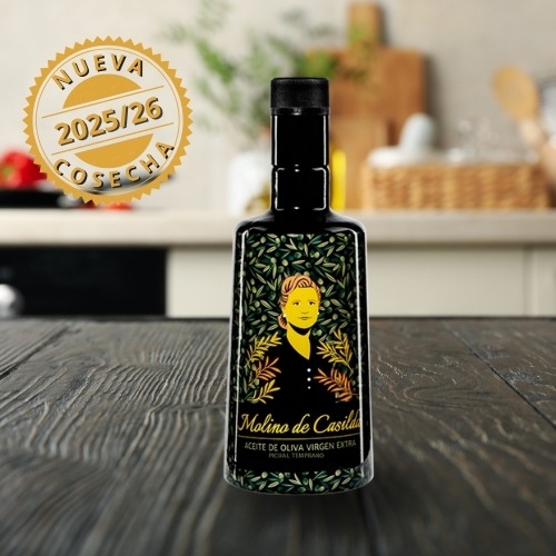 Aceite producido a base de aceituna variedad picual, originaria de olivar de Sierra. De la Sierra de las Villas de Jaén.
